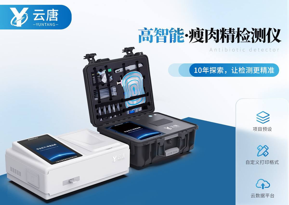 山東云唐智能科技有限公司生產(chǎn)的瘦肉精檢測(cè)儀可現(xiàn)場(chǎng)快速檢測(cè)鹽酸克倫特羅、萊克多巴胺、沙丁胺醇、己烯雌酚、喹乙醇等。儀器預(yù)留其他項(xiàng)目檢測(cè)程序和端口,根據(jù)日后需求可進(jìn)行遠(yuǎn)程設(shè)備升級(jí)。日后可升級(jí)為檢測(cè)抗生素、獸藥殘留、動(dòng)物疫病等檢測(cè)項(xiàng)目的綜合類型儀器。